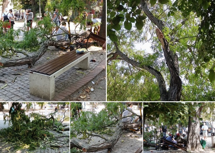 Голям клон падна върху човек в градинката зад Операта във Варна