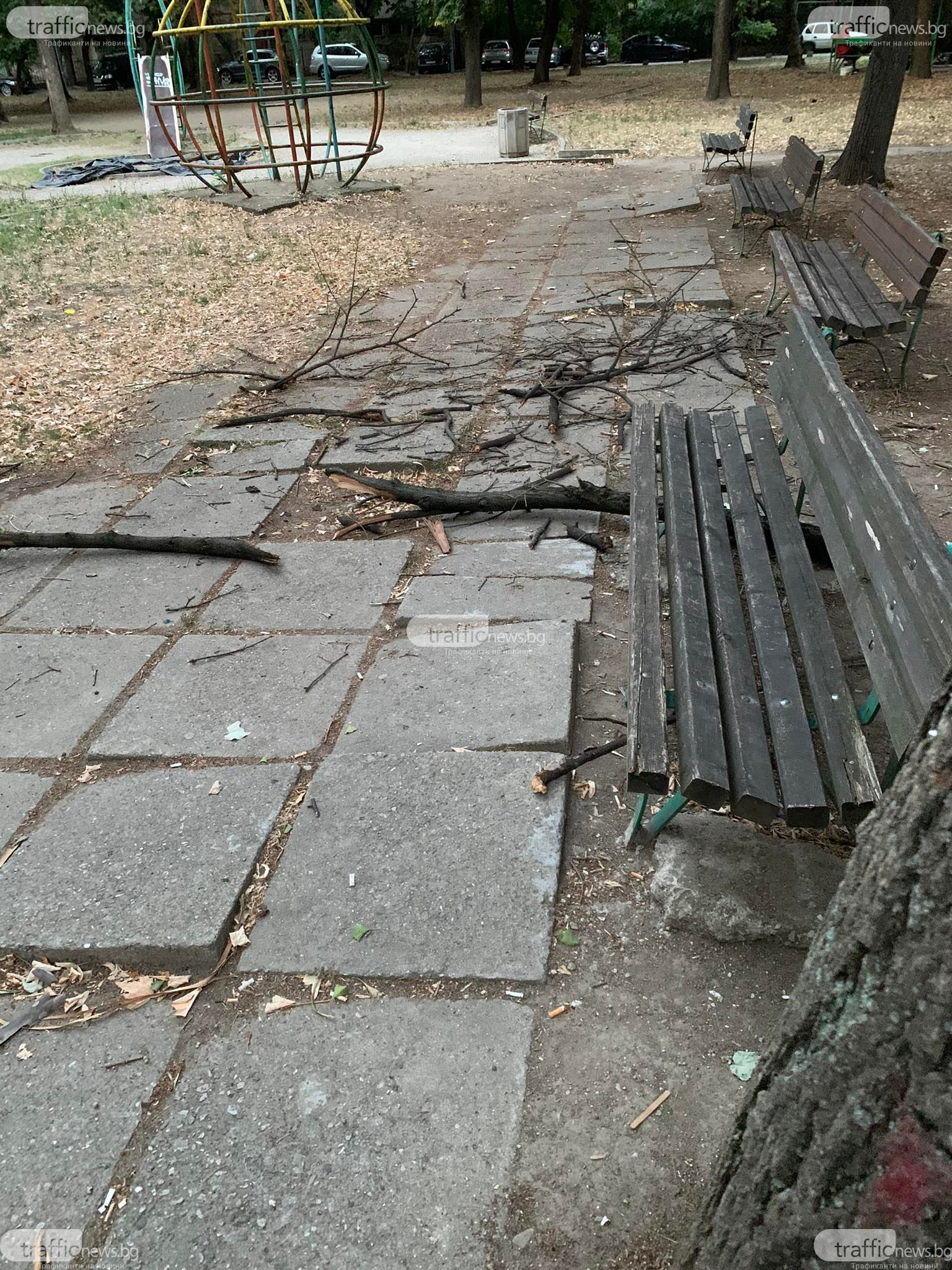 „ Пиша ви с разтреперени ръце. Тази вечер огромен клон падна в парка на пейките, където стоим майки с колички и доста други деца. За благополучие довечера се бяхме настанили на прилежащата скамейка. Време е общината да стартира да поддържа и дребните паркове.