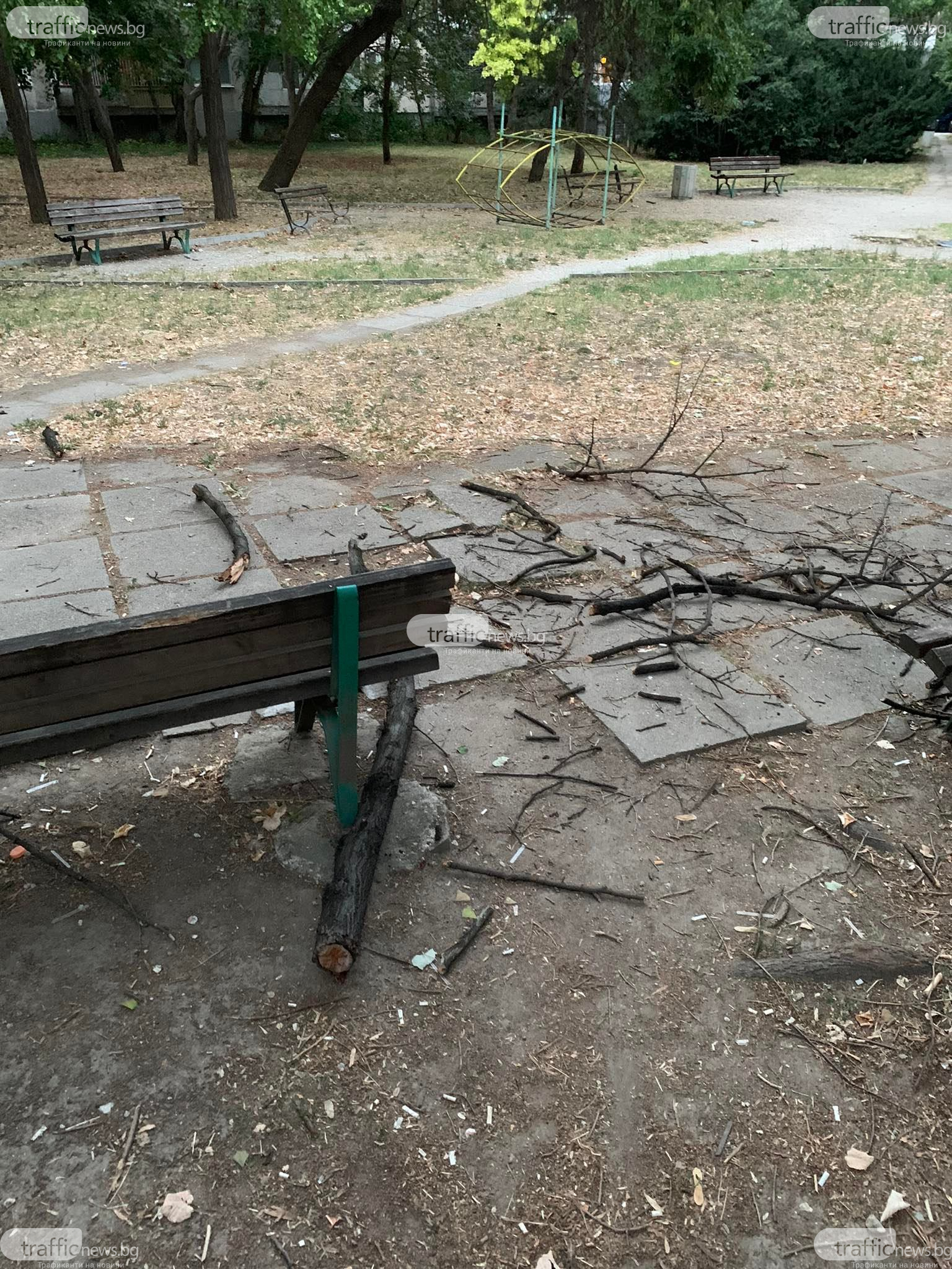 На метри от майки с деца: Голям клон се стовари на пейка в пловдивски парк