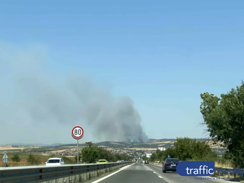 Пожарът се вижда от основния път сред Бургас и Айтос.