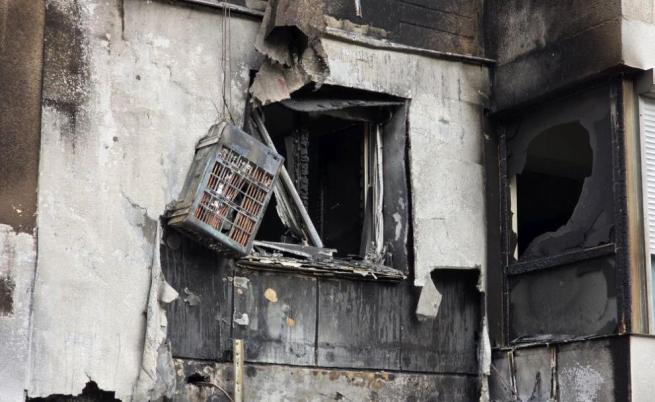 Предполага се, че огънят е тръгнал след гърмеж на батерията на хибриден автомобил, който е опушил фасадата на блока.