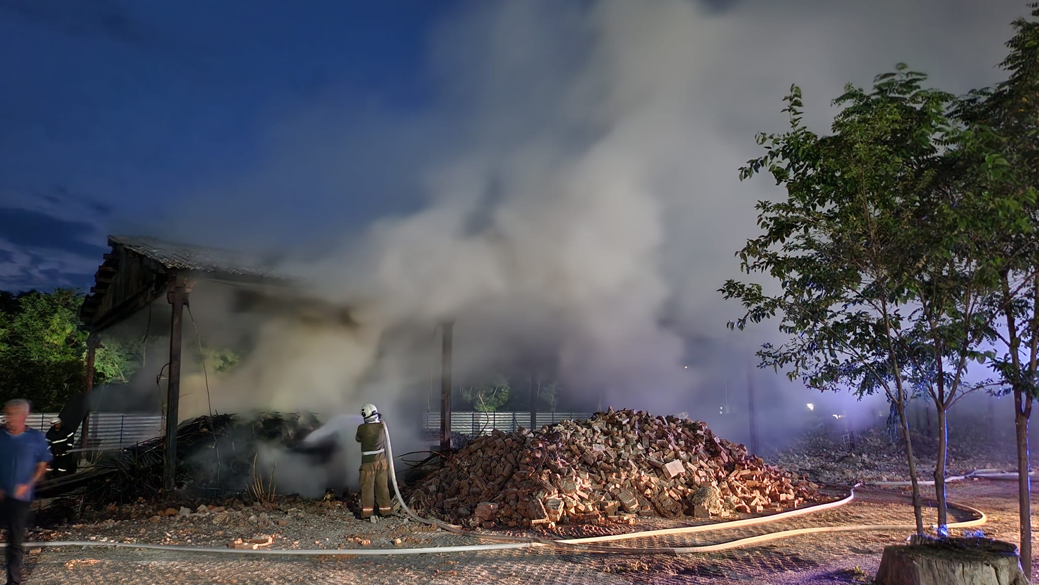 Голям пожар е лумнал на метри от незабавния бранш най- огромната болница в Южна България- УМБАЛ " Св. Георги ", оповестиха от пловдивската пожарна. Сигналът е подаден към 21.30ч. от водачи на коли, преминаващи около лечебното заведение, които алармирали за пламъци и гъст черен пушек. Към мястото незабавно са ориентирани огнеборци от Първа работа. Огънят е тръгнал от струпани строителни боклуци и е обхванал заслон. На терена следва да бъдат осъществени строителни действия, а до неотдавна навеса е бил употребен за паркиране на служебни коли. Единствено мигновената реакция на огнеборците предотврати по- огромни вреди. Малко по- рано през днешния ден огнеборци от Раковски и Пловдив избавиха и икономически двор за развъждане на патици. Пожарът е тръгнал от житен блок, покрай икономически двор в Раковски. Огнеборците съумяха да от спасят от опожаряване постройката и птиците.