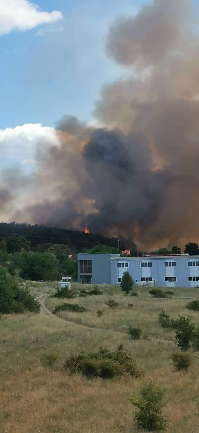 Голям пожар е горящ в гориста околност в Казанлък, научи GlasNews.bg.