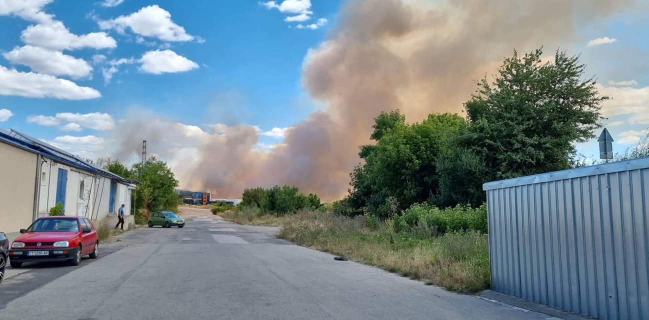 Огънят се разгорял край пътя София - Варна и е на към 150 метра от бензиностанция. Димът се вижда от Паничерево, Бузовград и от центъра на Казанлък.