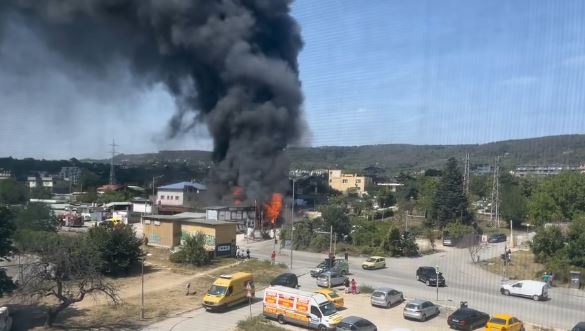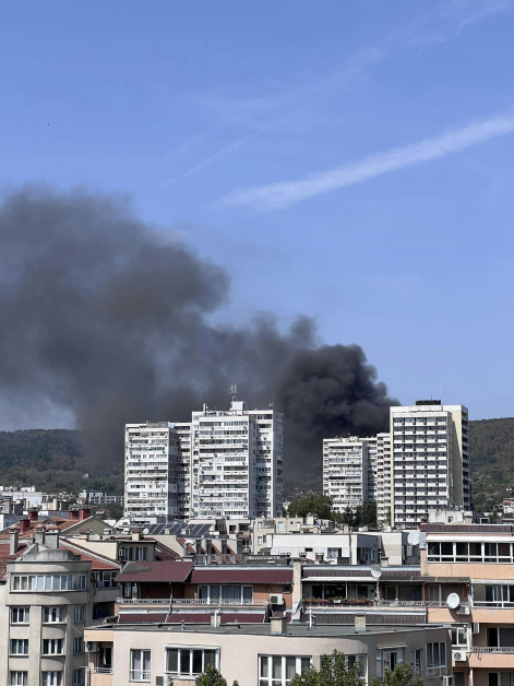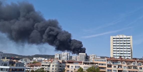 Голям пожар гори в този миг във Варна. Гъсти черни пушеци се носят край Военна болница. Жители на морската столица оповестяват, че огънят е горящ в строителен склад, както и склад за батерии.
