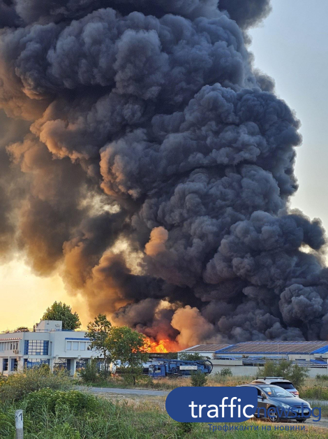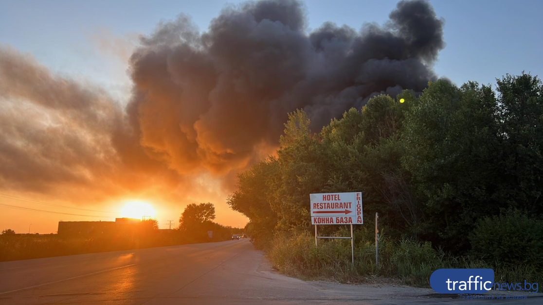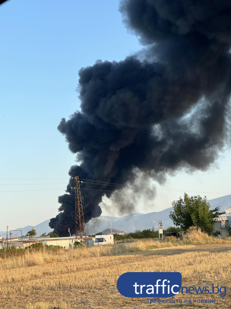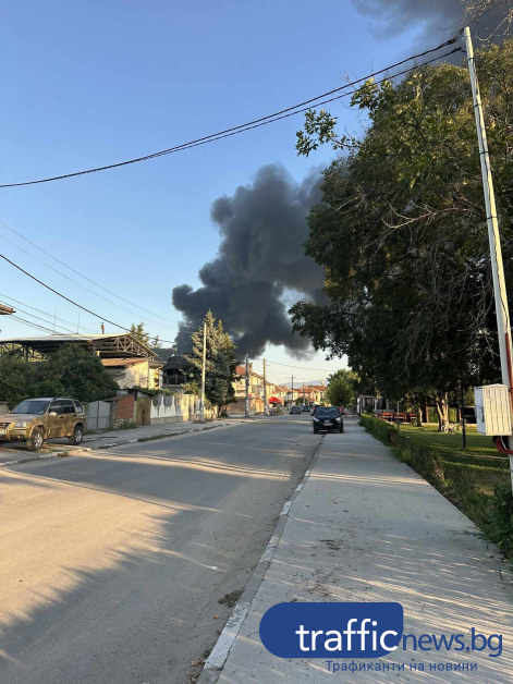 Голям пожар се развихря край Пловдив. Гъстият черен дим се вижда от целия град. Гори склад и завод за преправка на пластмаси в землището на пловдивското село Царацово, община Марица.