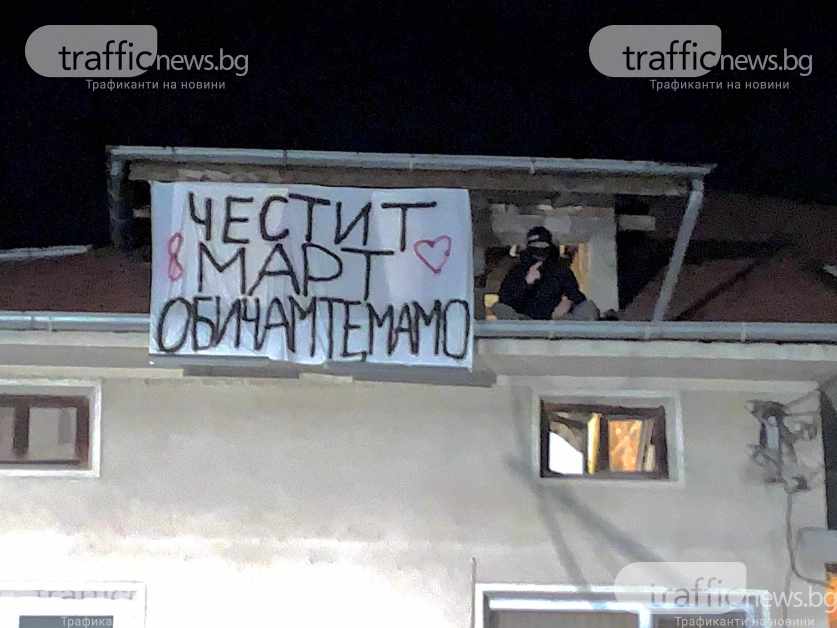 Голям транспарант с надпис „ Честит 8 март Обичам те, мамо “ в Златитрап е изненадата, която 17-годишен възпитаник от Строителния колеж е подготвил за празника на майка си. Това показа Никола Шарков пред TrafficNews.bg .