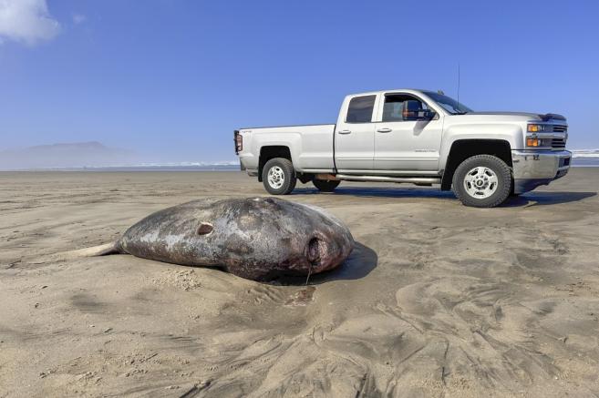 Голяма риба луна, за която се счита, че е необичаен образец, е изплувала на плаж в щата Орегон, в северозападната част на Тихия океан, оповестиха от аквариума в град Сийсайд, представени от ДПА и Асошиейтед прес.