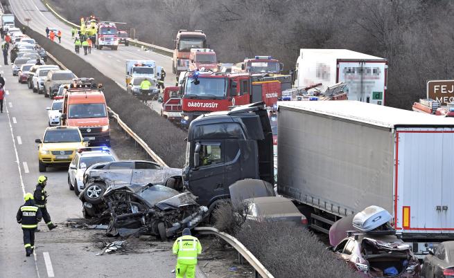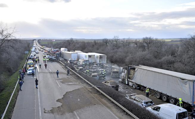 Голяма верижна злополука е станала на автомагистрала М1 покрай Херцегхалом в Унгария, осведоми EPA.