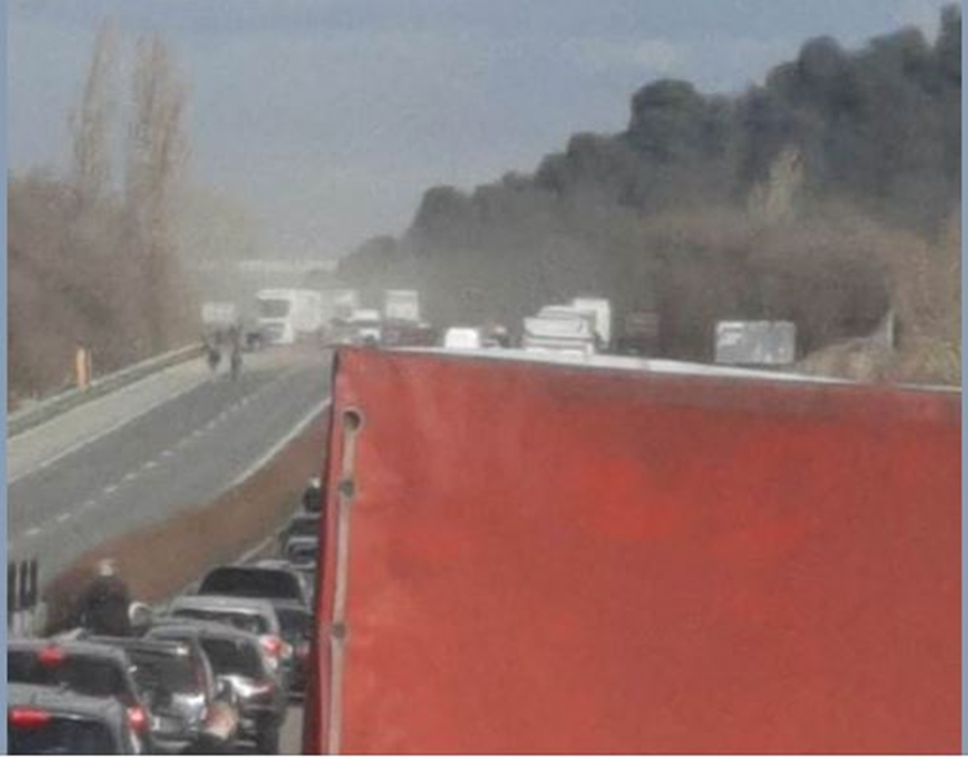 " Има злополука и пожар, в двете направления е спряно придвижването. ", написа Атанас Атанасов, който е прикачил и фотография на метри от ужасяващия случай.