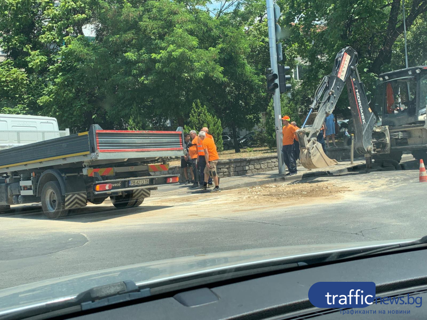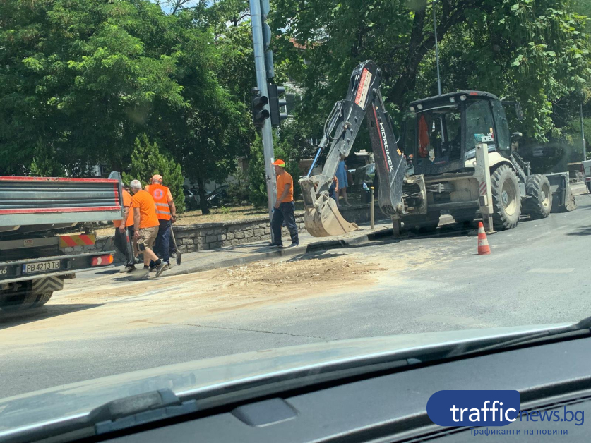TrafficNews се свърза с представителя на ВиК Йордан Чемишев, който съобщи, че багерът към този момент запълва копаното място и се чака до час, час и половина дейностите да завършват. В региона има повреда на тръбопровод на високата зона на Бунарджика, който зарежда Стария град.
