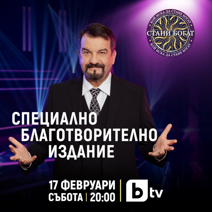 Голямата игра в „ Стани богат “ с Ники Кънчев стартира на 17 февруари, събота, от 20:00 часа със специфичен двучасов благотворителен епизод. Емблематичният водещ ще посрещне в студиото известни лица от ефира на bTV, които ще играят в поддръжка на акцията на БЧК „ Топъл обяд “ и със събраната сума ще подкрепят възпитаници в неравностойно състояние и техните родители. На 19 февруари в 18:00 часа, стартира вълнуващият път към огромната премия от 100 000 лева на участниците в новия сезон на най-популярната игра за познание в света „ Стани богат “.
