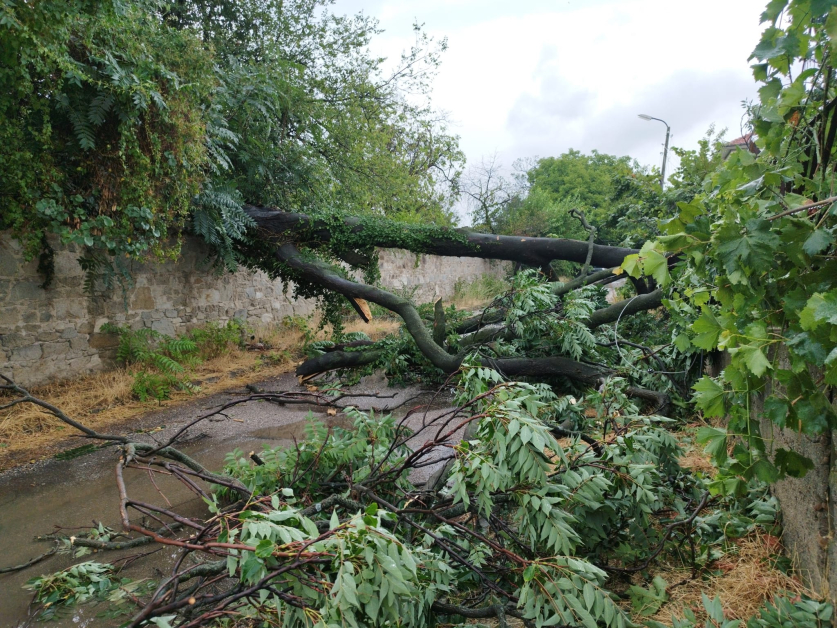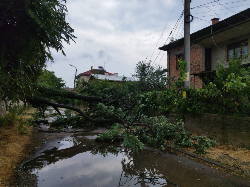 Дървото е паднало на улица " Козница " в резултат на мощна стихия, минала през Баня.