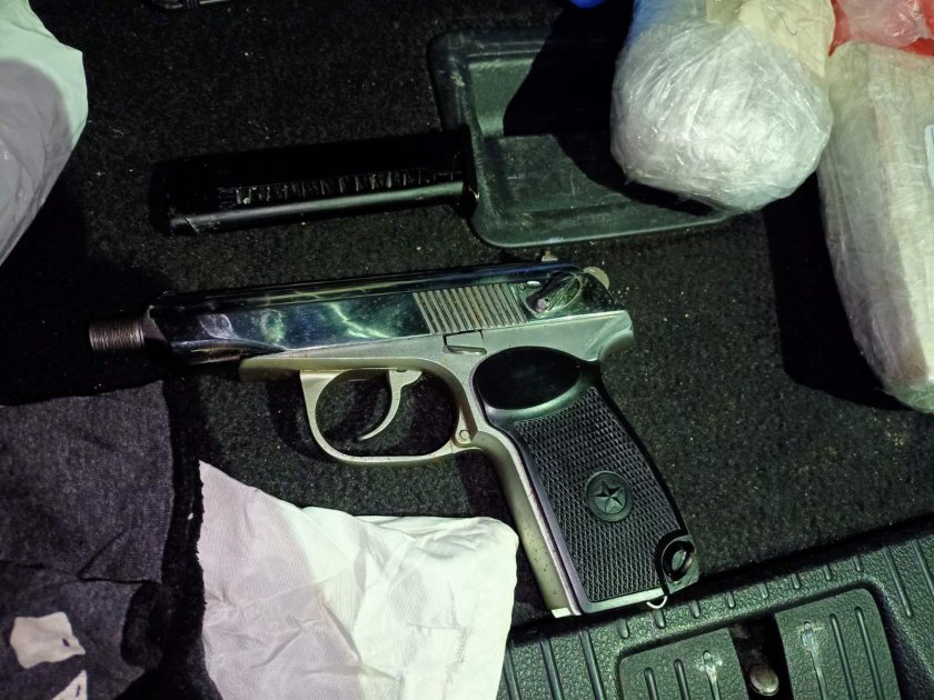 Снощи служителите на реда засекли пред дома му в кв. " Младост " 44-годишен варненец. Когато видял униформените, той хвърлил огромен сак в колата си и се опитал да избяга, само че бил арестуван. В автомобила му са открити разнообразни наркотични субстанции, военен револвер със заглушител и със заличени серийни номера, три кутии с муниции, електронна везна, 12 000 лв. и 20 000 евро.