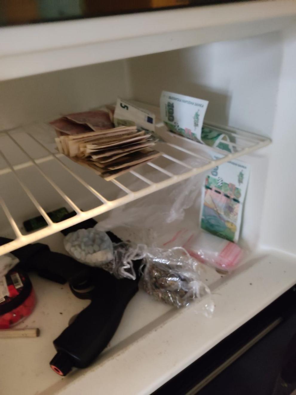 Министерство на вътрешните работи В хода на интервенцията са осъществени претърсвания на четири адреса в регионалния град, откъдето са конфискувани към 11 кг марихуана, близо 50 г кокаин, над 500 таблетки амфетамин и над 40 000 лв. .