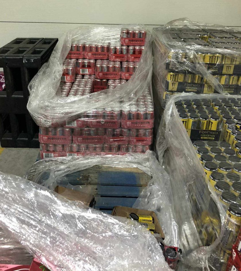 При инспекцията са открити складирани и готови за следваща експедиция пакетирани хранителни артикули и питиета от разнообразни марки в огромни количества.