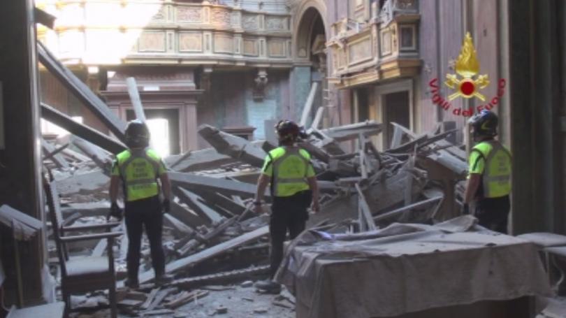 Голямо парче от дървения таван на черква от 16-ти век в историческия център на Рим рухна. Не се оповестява за потърпевши хора.