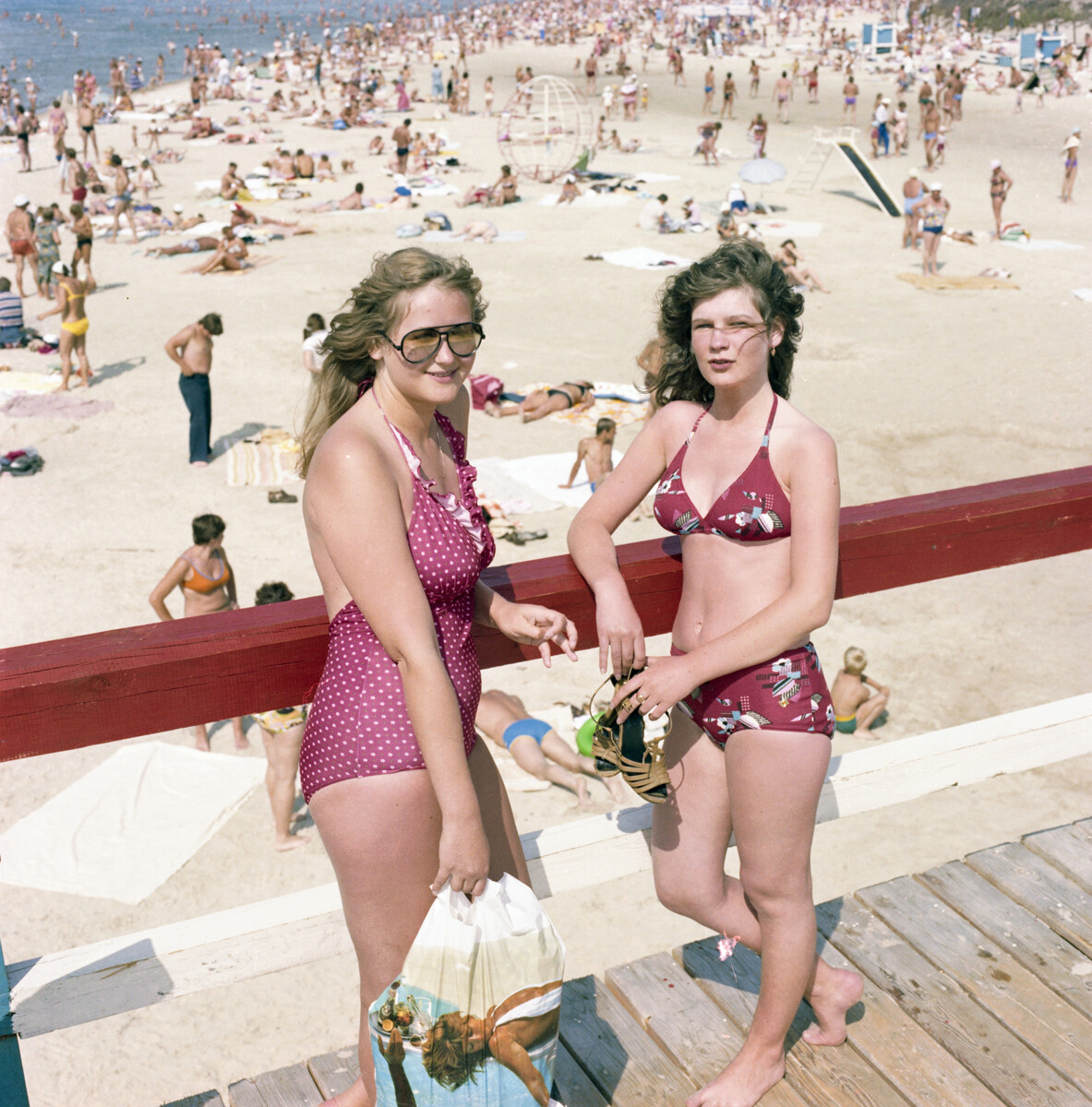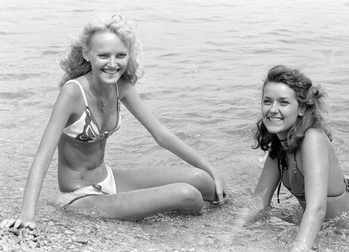 Банските костюми към момента са дефицитни, а ретро версията с висока талия продължава да бъде известна до 1980-те години. Но „размразяването“ в тези години доближава и до плажа – все по-често се носят тоалети без презрамки, които разкриват шията и раменете.