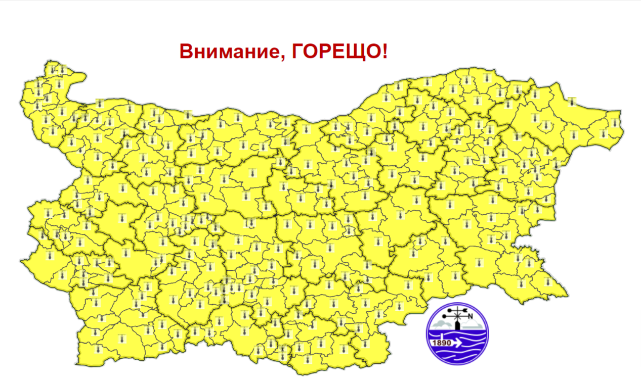Горещото време продължава и на следващия ден. Това демонстрира уеб сайтът на Национален институт по метеорология и хидрология. Очакват се доста високи температури. Жълт код за пъклен горещини е разгласен за цяла България.