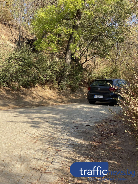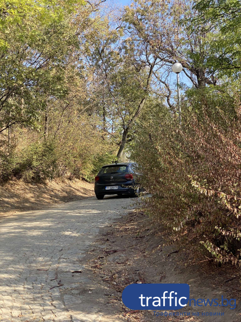 Гости на града се изкачиха по алеята на Младежкия рид с колата си. Автомобилът е с варненски регистрационен номер, а на лидера са попаднали пловдивчани, които са се разхождали из естествената забележителност.