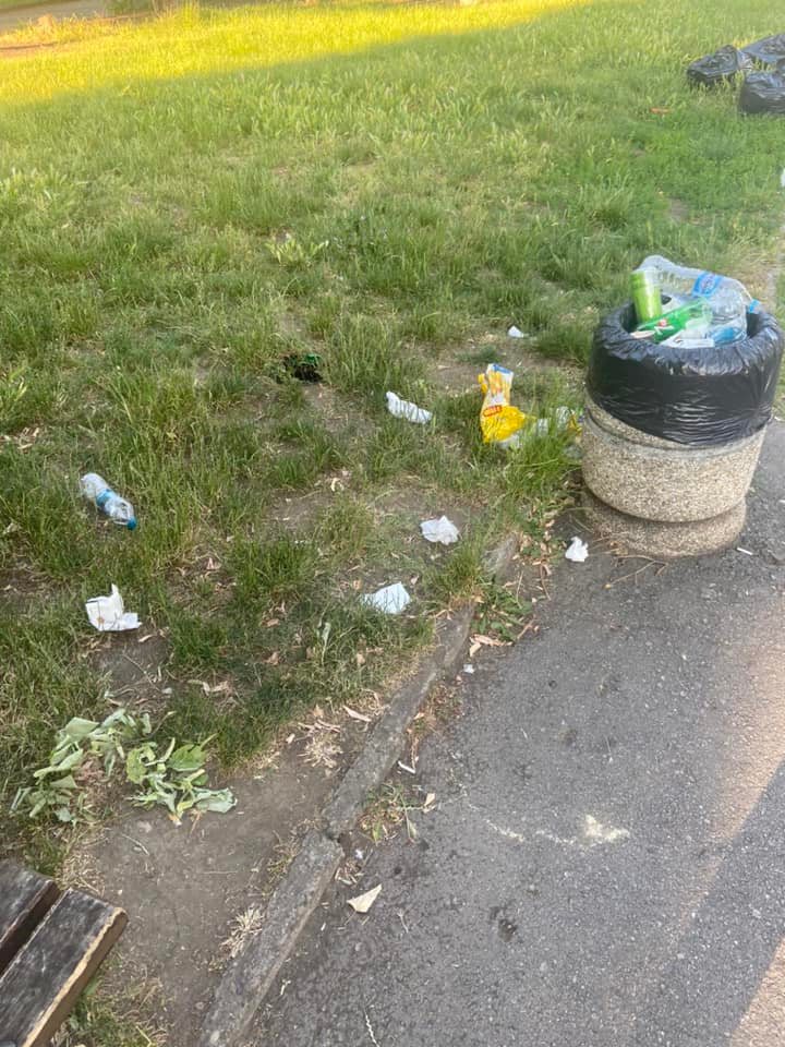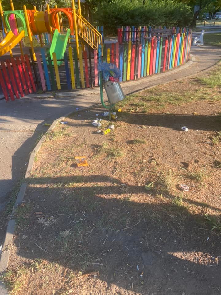 „ Кучешката градинка - неповторимо сметище в центъра на града! Ето какво са приготвили за празника на детето благите ни ‘’съграждани,,! Абе мизерници, на всяка крачка има кошчета за отпадък, толкоз ли е комплицирано да се употребяват?, “ написа тя.