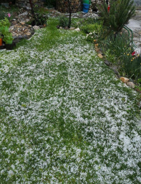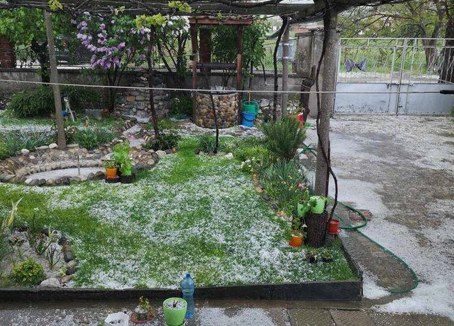 Земята е побеляла, а ледените парченца са с размерите на грахово зърно.