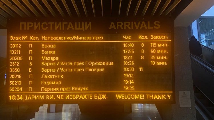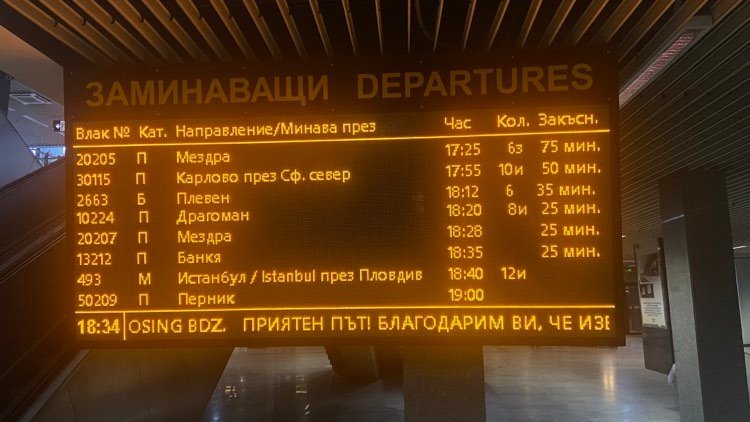 Репортер на Lupa.bg откри на място, че някои влакове закъсняват със 115 минути или с по два часа. На таблото на Централна гара, където излиза наяве с какъв брой закъсняват влаковете се мъдри и надпис, който може да провокира единствено подигравка: " Приятен път. Благодарим Ви, че избрахте БДЖ. "
