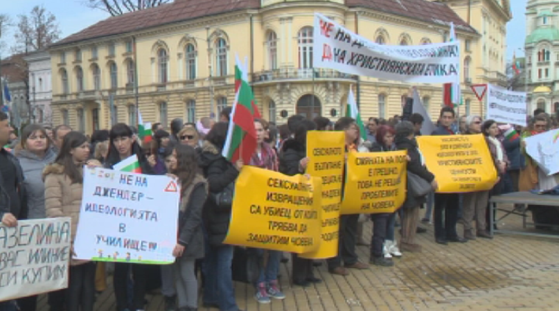 Граждани стачкуваха пред Народното събрание против така наречен от тях джендър-идеология. Демонстрацията е проведена от Фондация " Пълноценен живот ". Събралите се обявиха, че са срещу всякаква форма на принуждение, в това число против дами и деца. Според тях обаче казусът с насилието няма да се реши с утвърждението на Истанбулска спогодба. Считат, че документът цели замяна на християнските полезности с " джендър-идеология ".
