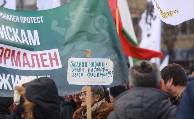 Граждани се събират на митинг пред Народното събрание с искане за анулация на зеления документ, съобщи Българска телеграфна агенция.
