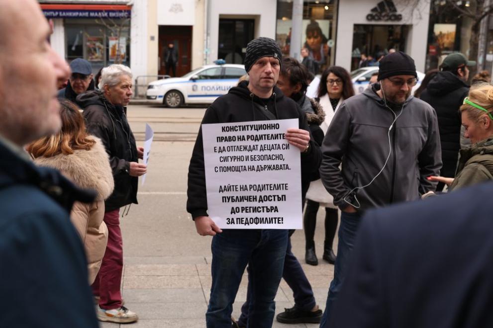 Един от проблемите е, че законите са прекомерно меки към насилниците на деца и към педофилите. Другият е, че България няма обществен указател на педофилите. Те излежават присъдите си след което потъват в неизвестността, сподели пред протестиращите Георги Драганов, един от уредниците.