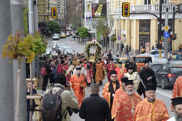 Граждани се събраха в столицата пред митрополитската черква " Света Марина ", откъдето потегли шествието, на което мощите на великомъченика Свети Георги бяха отнесени за всенародно поклонение в църквата " Света София ".