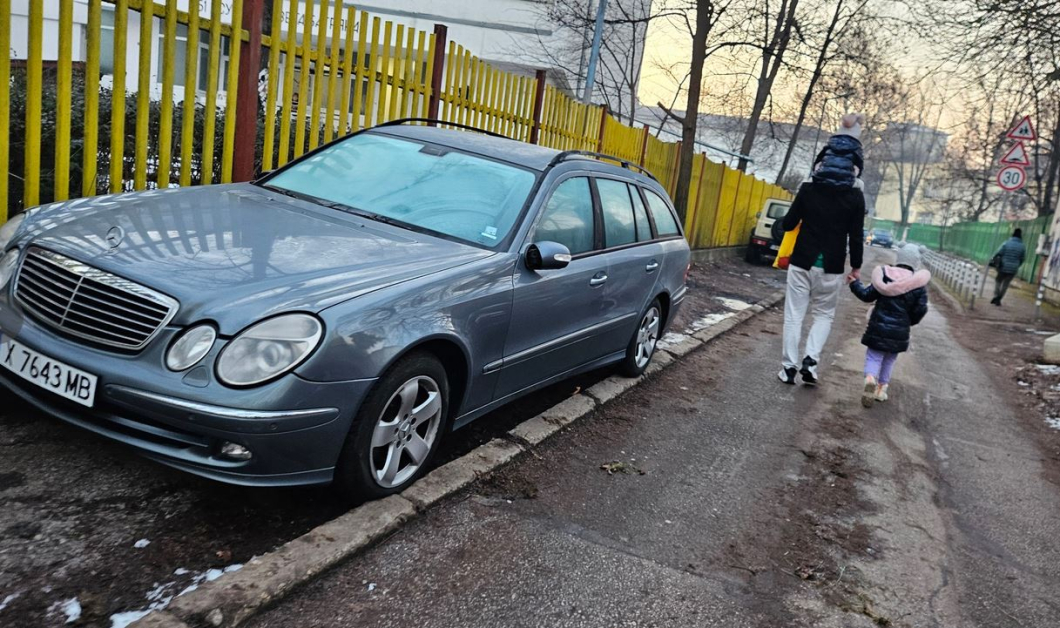 На един от фрагментите се вижда татко с две деца, който самоуверено крачи по асфалта, до момента в който " Мерцедес " и дребен джип заемат пешеходното пространство. Динко А. отбелязва, че в непосредстване непосредственост се намират учебно заведение и детска градина.