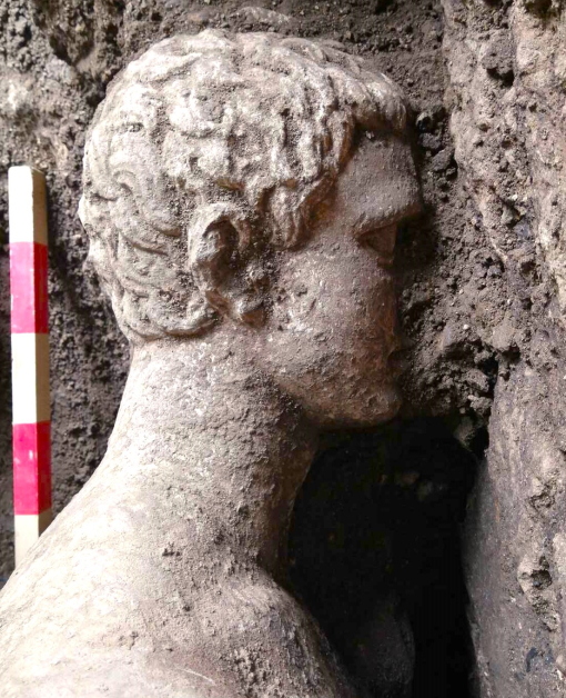 Става въпрос за изцяло непокътната мраморна склуптора над 2 метра, която евентуално изобразява господ Хермес.