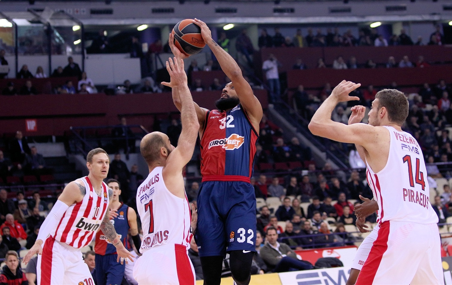 Гръцкият отбор Олимпиакос победи гостуващия Баскония (Испания) с 91:87 след продължение в среща от 17-ия кръг на Евролигата по баскетбол за мъже. Редовното време приключи 80:80.