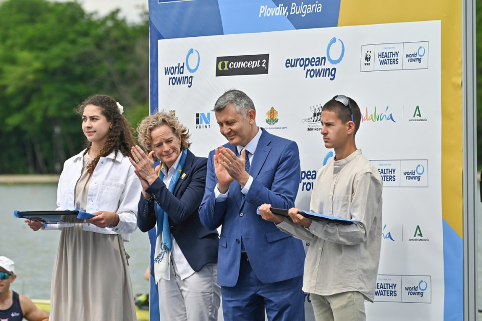 В Пловдив дойде и президентът на Световната федерация по гребане Жан-Кристоф Ролан, който се включи в церемониите по награждаване дружно с президента на Европейското гребане Анамари Фелпс.