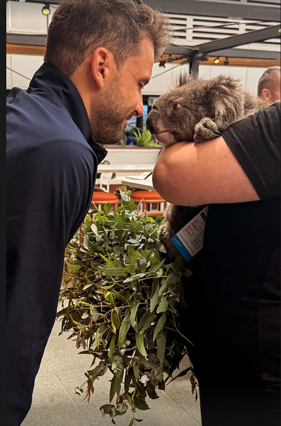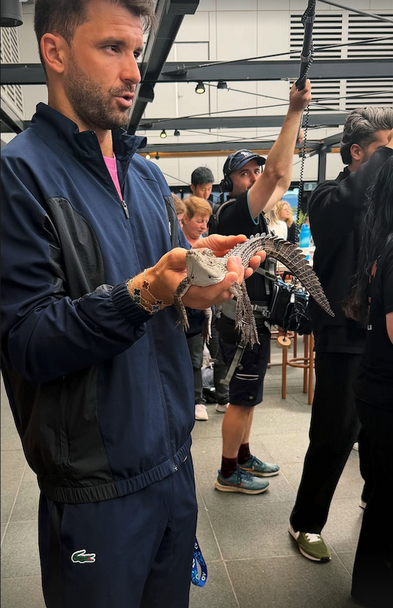 Заедно с други звезди от тениса той посети локална зоологическа градина. Там в прегръдките му се оказа малко кенгуру и даже крокодил. Гришо се оказа в непосредствена непосредственост и със симпатична коала, с която си замени ескимоска целувка.