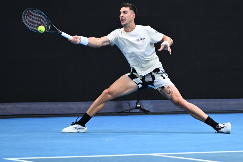 Григор Димитров играе мача си от втория кръг на Australian Open против Танаси Кокинакис на „ Джон Кейн Арена ".