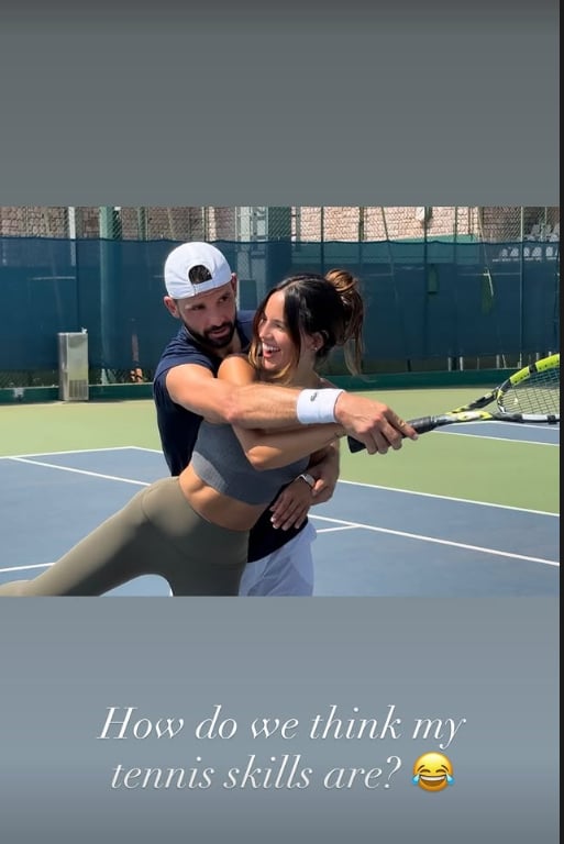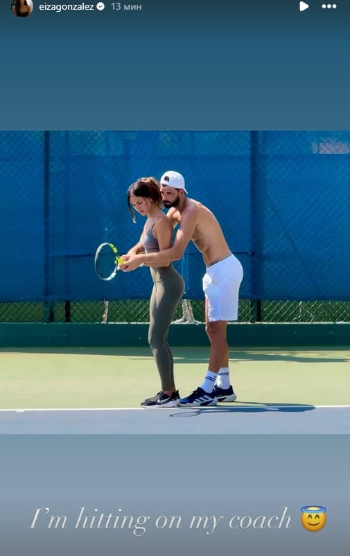 Самата Ейза не пропусна да се похвали с първите си стъпки в тениса и качи няколко фрагменти на двамата влюбени, като попита своите почитатели по какъв начин се оправя и също по този начин закачливо добави, че към този момент е почнала да смъква " своя треньор ".
