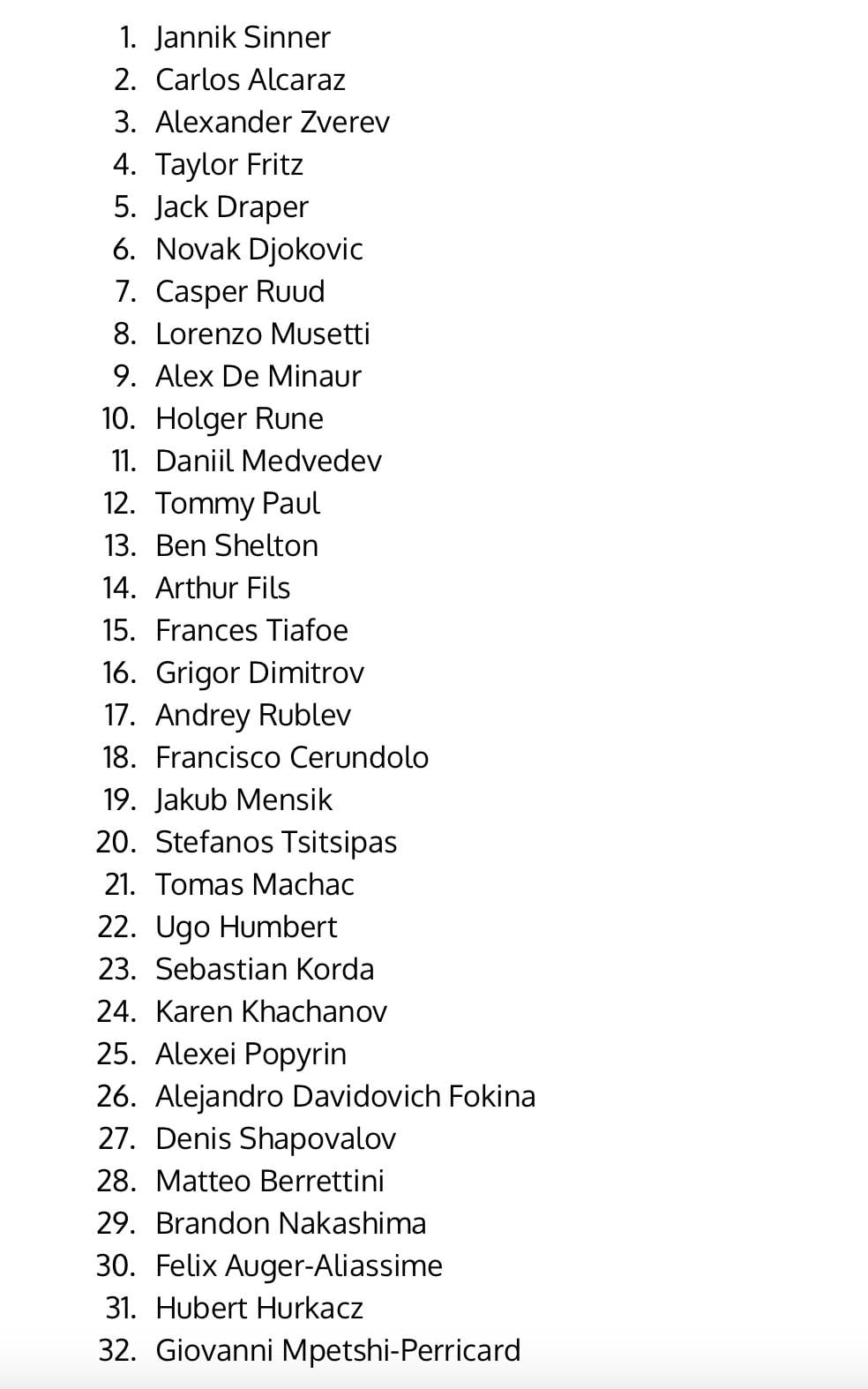 Любопитното е, че Новак Джокович не попадна измежду тази най-елитна група сложени и още в 1/4-финалите можем да забележим повтаряне на олимпийския край сред него и Карлос Алкарас, както и среща на 24-кратния " мейджър " притежател със международния номер едно от Италия.
