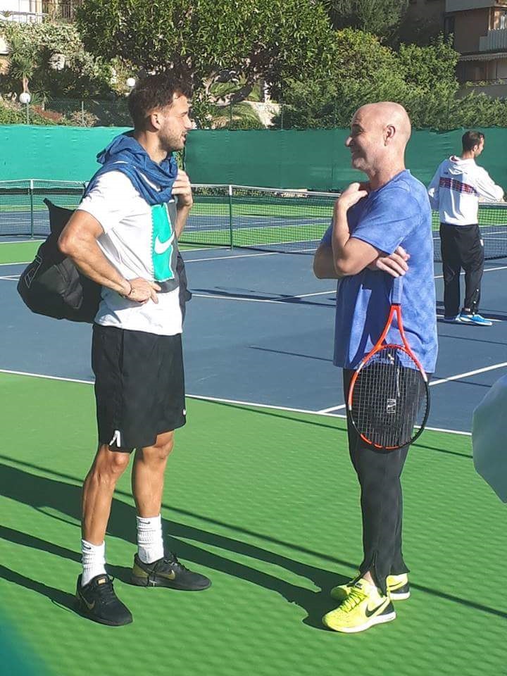 Григор Димитров поддържа форма в Монте Карло в подготовка за виновния сезон 2018, където ще би трябвало да отбрани превъзходното си показване през миналата акция. Хасковлията се засече и обмени няколко думи с един от треньорите на Новак Джокович и американска тенис легенда Андре Агаси. Както е известно, и хасковлията, и Ноле са основани в Монте Карло, а пък различен ментор на сърбина - Радек Щепанек - е негов комшия в Княжеството.