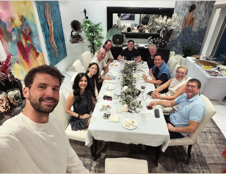 34-годишният Димитров показа в обществените мрежи фрагменти от празничната вечеря, на които участва и локалната художничка и лайфкоуч Самар Джашан – част от най-близкото му обграждане. На фрагментите обаче не се вижда приятелката му Ейса Гонсалес.