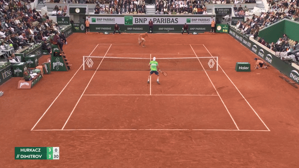 Въпросната точка се състоя при 3:3 гейма в първия сет, когато Хуркач изглеждаше подготвен да се оправи с излизането към мрежата от страна на своя противник, откакто извърши привидно ослепителен прехвърлящ удар. Димитров обаче показва свръхестествен атлетизъм и доближи още във въздуха до топката, която беше надалеч над равнището на неговата височина, демонстрирайки страхотна импровизация и в последна сметка завоюва разиграването след прословут удар с тил към мрежата.