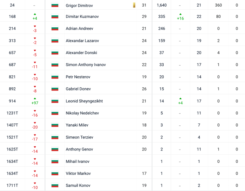 Григор Димитров запази позицията си, прогрес за Димитър Кузманов