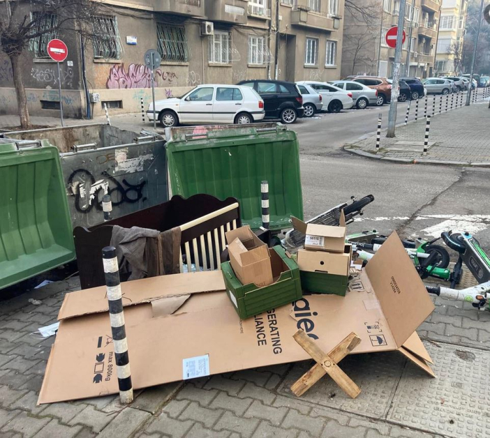 Грозна панорама до казани в центъра на столицата. Цял куп с боклук изникнал до контейнерите за отпадък на една от пресечките на ул. " Николай В. Гогол ".