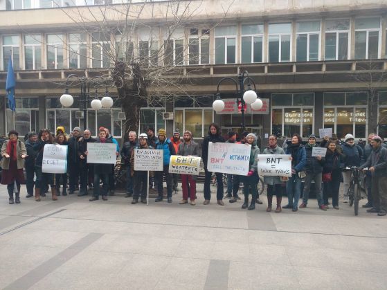 Протестиращите пред Българска национална телевизия, измежду които бе и Тома Белев, се заканиха да изпратят сигнал по случая до Съвета за електронни медии.