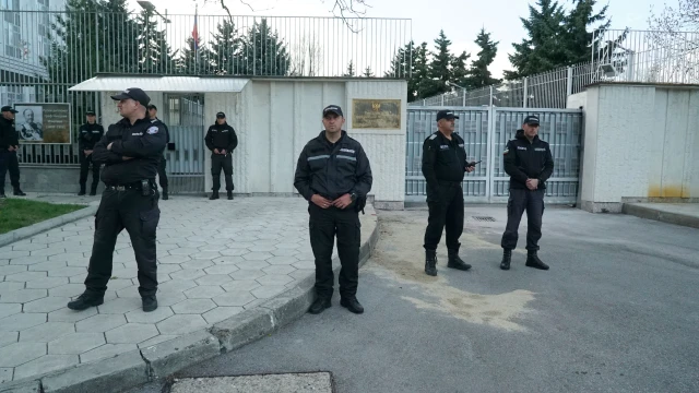 Те не бяха позволени наоколо до постройката от охраняващи служители на реда.