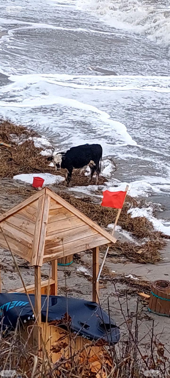 Група къмпингуващи са се притекли на помощ на бедставаща крава в региона на Царево. Животното е било повлечено от мощна приливна вълна. Тя го е повличам от региона на Китен до къмпинг „ Гардения “, локализиран малко след устието на река Караагач.