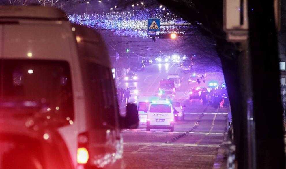 Обърнаха и контейнери с отпадък. А малко по-късно ги възпламениха и ги бутаха към кордона. Част от събралите се пред постройката спираха запалените контейнери и им споделяха да не ги палят.