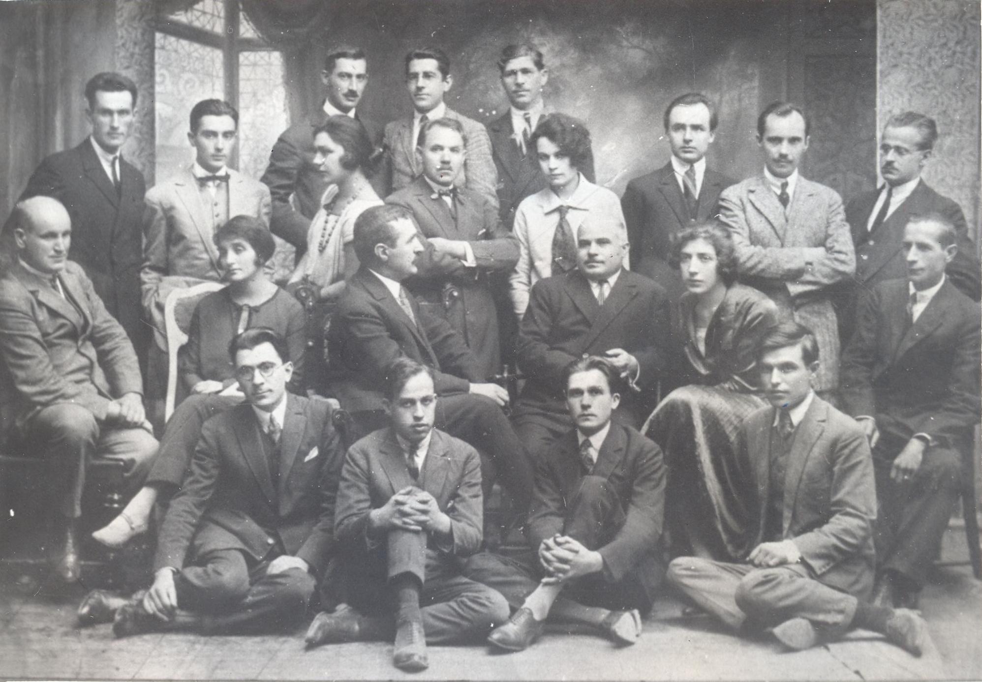 (Групова фотография на сътрудниците на списание „ Златорог “, 1925 -1927 година - Николай Райнов е последният вдясно, втори ред)