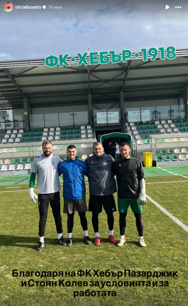 Густаво Бусато, който неотдавна се раздели с ЦСКА, поддържа форма с тима на Хебър. Бразилецът пусна фотография в обществените мрежи, на която, с изключение на него, са още двамата вратари на пазарджликлии, както и техният треньор Стоян Колев